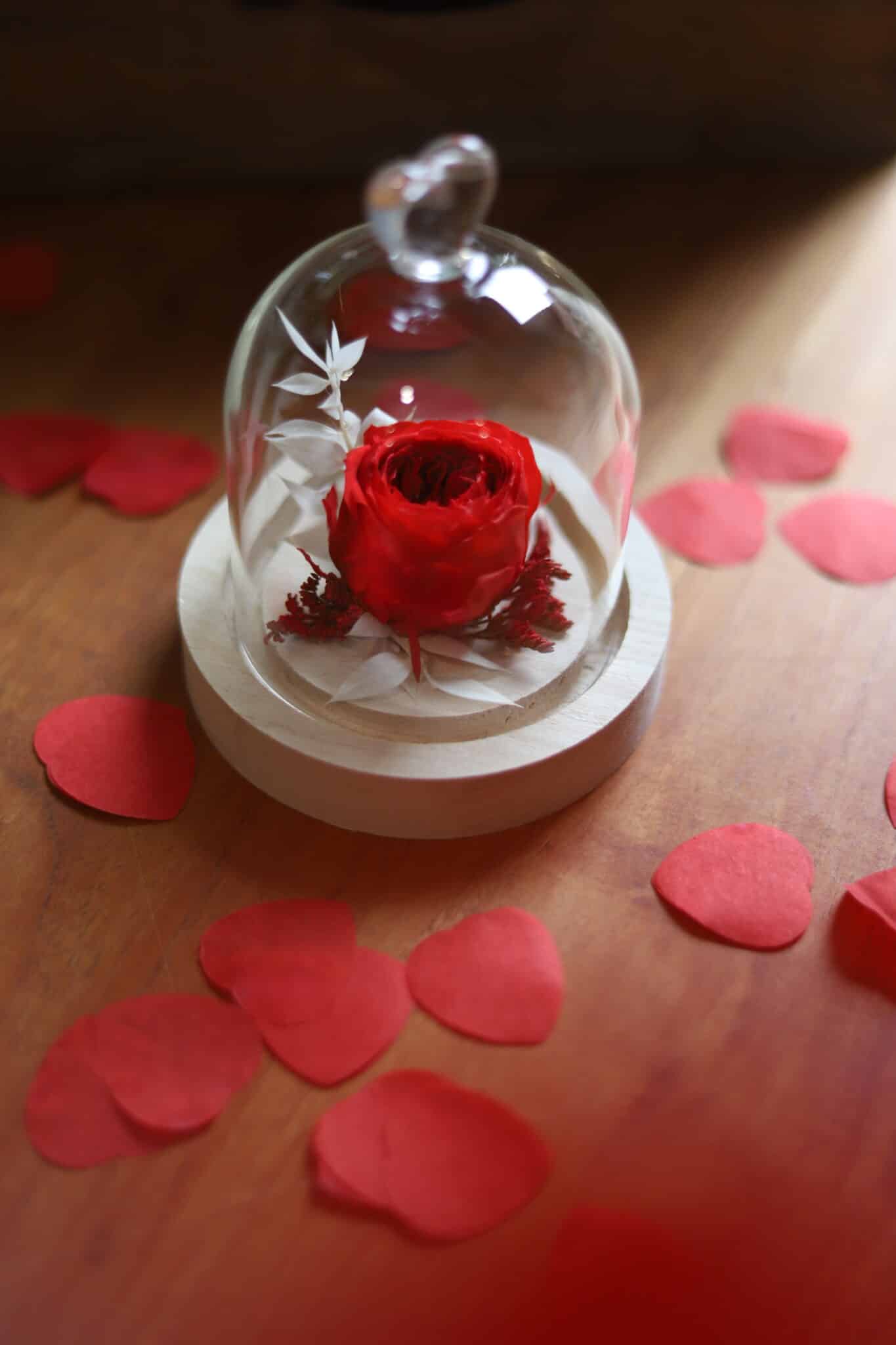 Spécial SAINT VALENTIN : découvrez cette cloche garnie d’une rose éternelle stabilisée rouge.