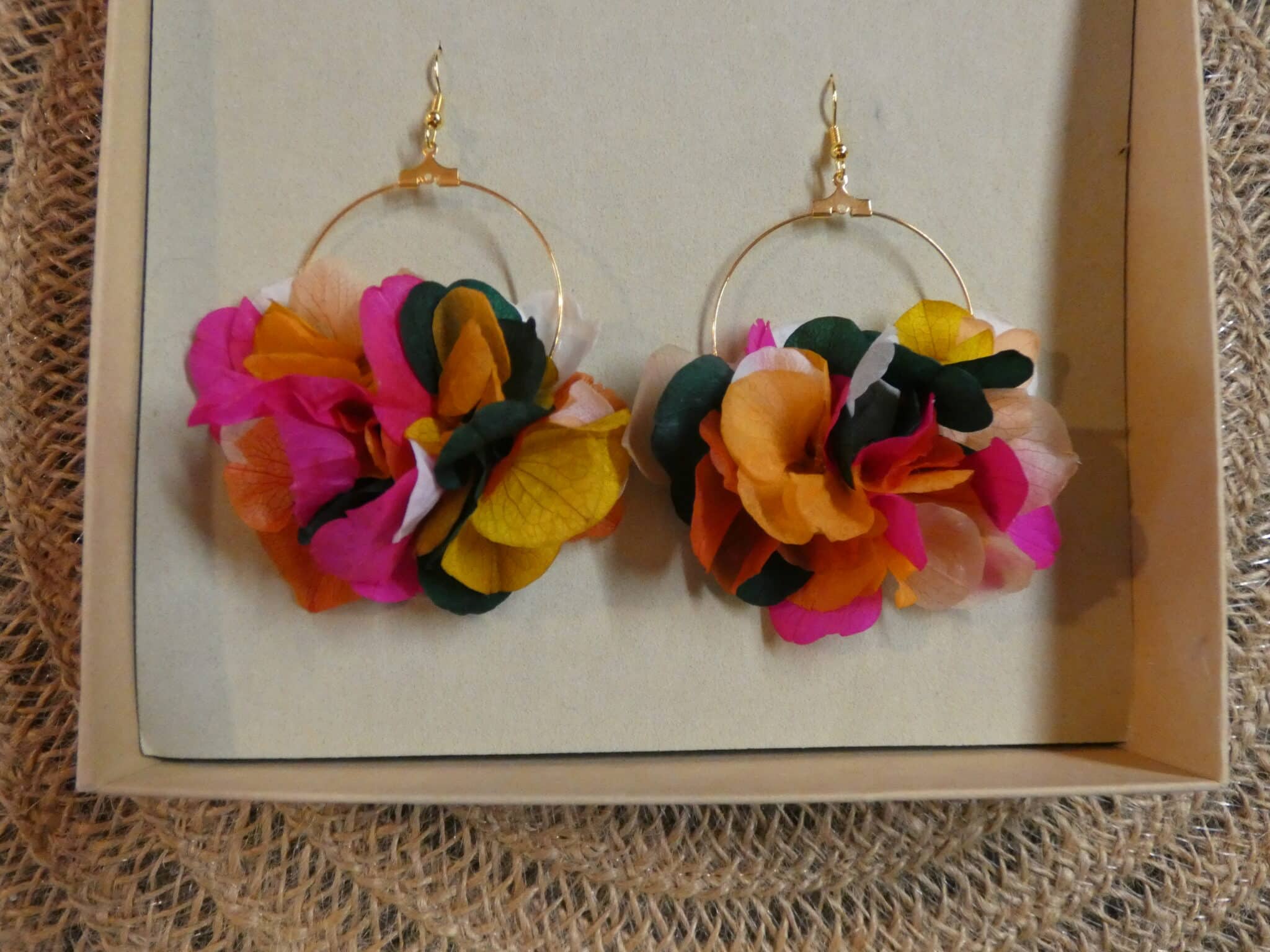 Entièrement réalisées à la main dans notre atelier, les boucles d’oreilles en hortensias stabilisés multicouleurs conçues pour une durée de vie éternelle.