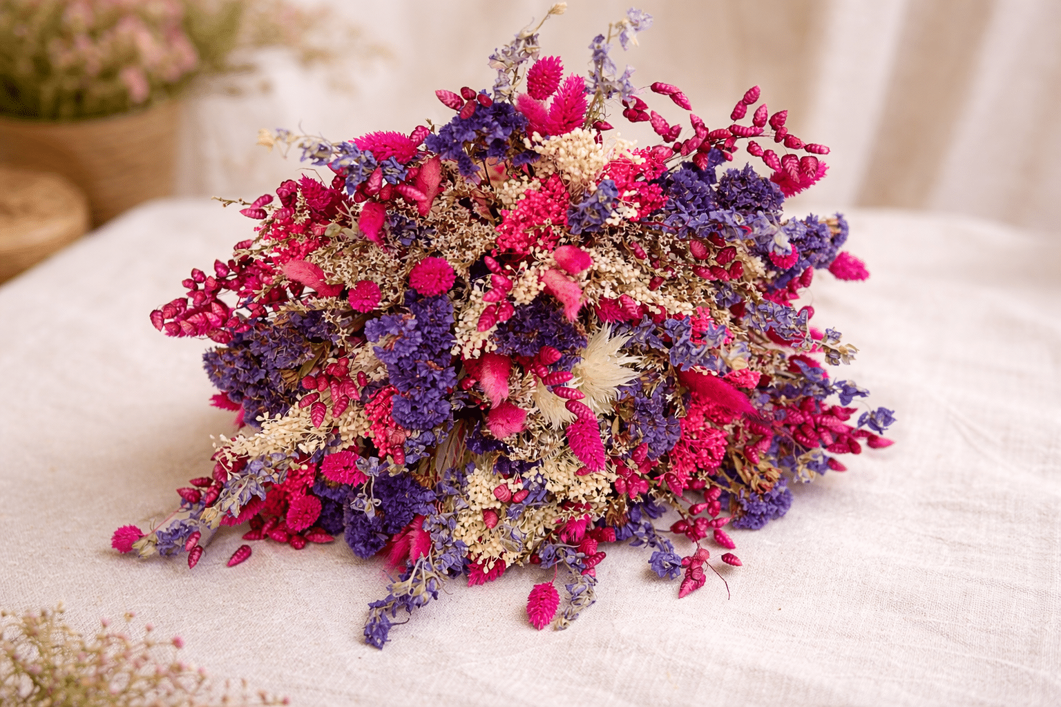 Osez l’originalité et décorez avec simplicité votre intérieur avec des bouquets de fleurs séchées.