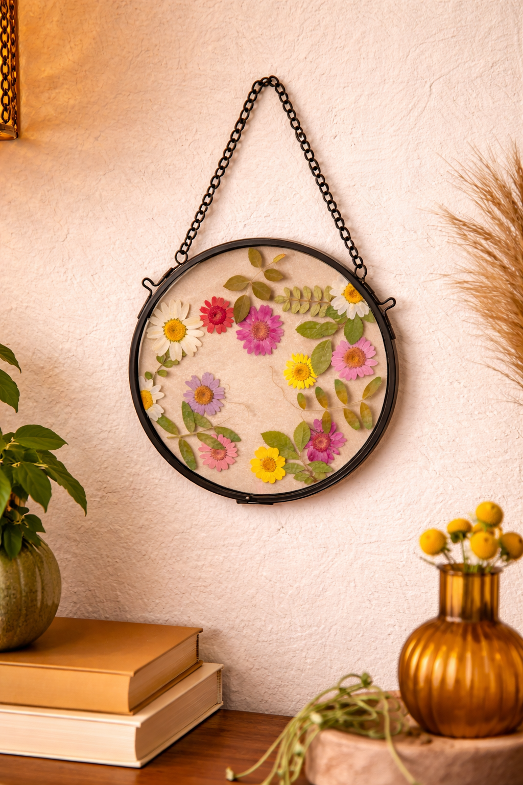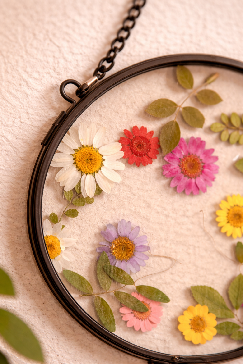 Découvrez notre cadre en fleurs pressées et séchées, une pièce décorative inspirée de l’esthétique vintage. Réalisé à partir de végétaux naturels soigneusement séchés à la main, il incarne à la fois authenticité et douceur rétro.