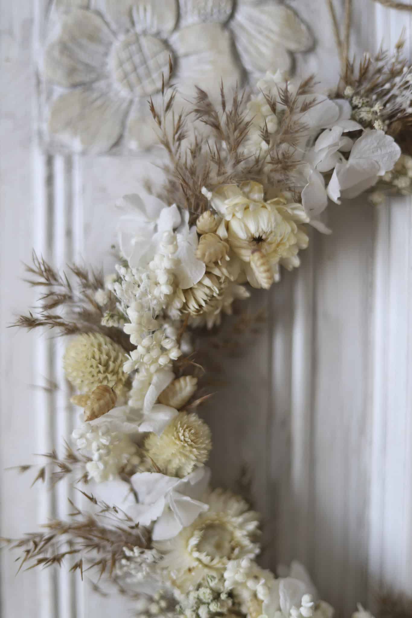 Succombez à l’une de ces couronnes de fleurs séchées confectionnée avec délicatesse dans mon atelier.