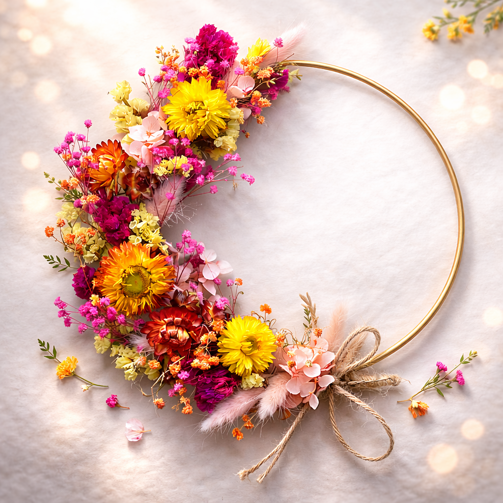 Succombez à l’une de ces couronnes de fleurs séchées, confectionnée avec délicatesse dans mon atelier.