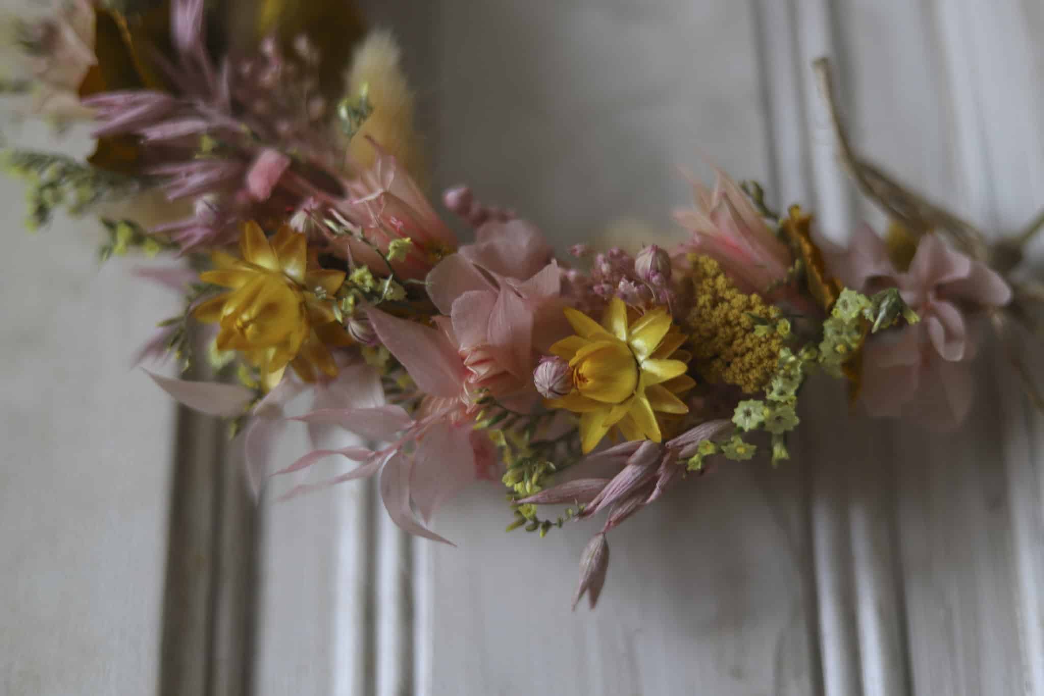 Succombez à l’une de ces couronnes de fleurs séchées confectionnée avec délicatesse dans mon atelier.