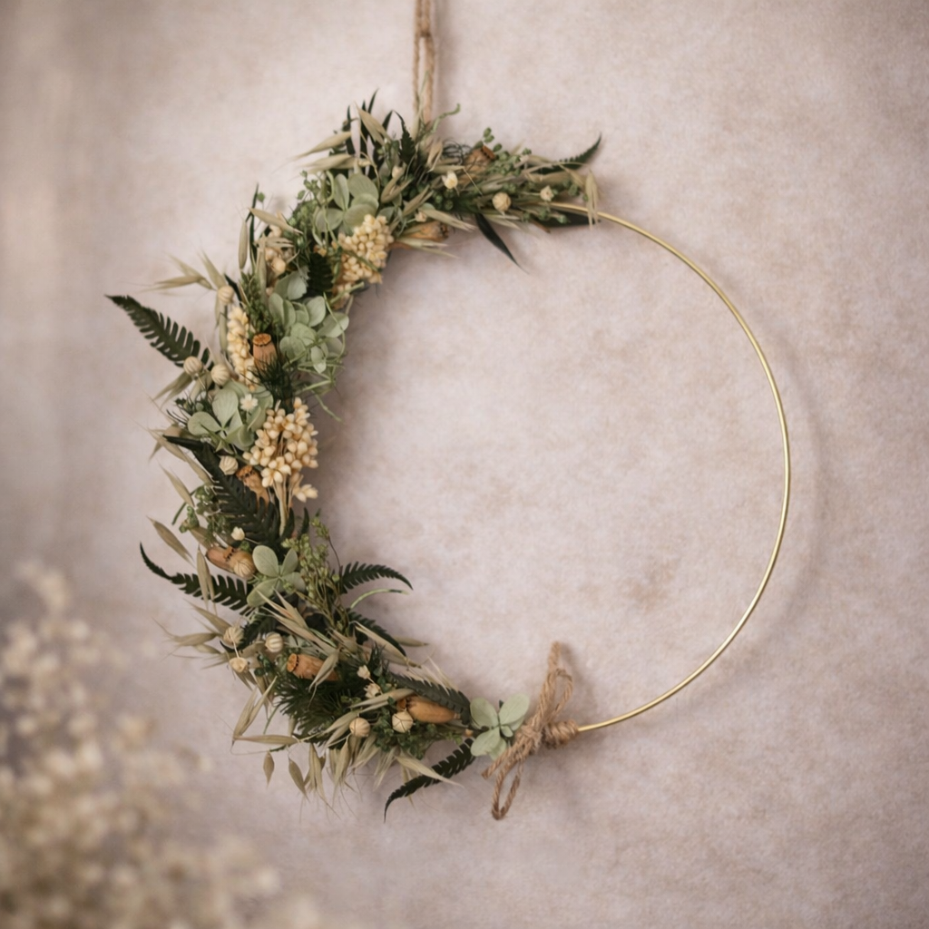 • Couronne en fleurs séchées et stabilisées