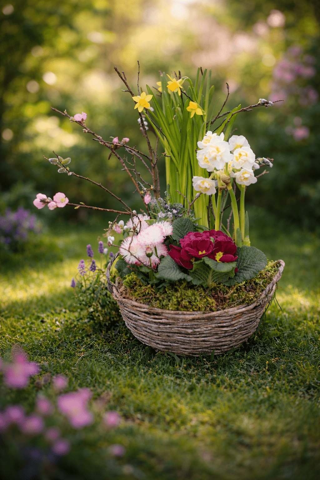 Une ravissante composition de plantes printanières à replanter au jardin.